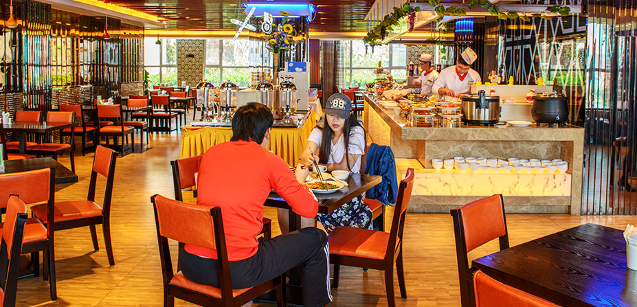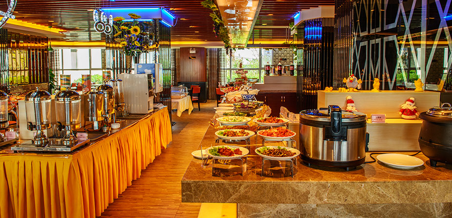 뷔페 조식청인 성웨청은 호텔 객실건물의 6층에 위치하여 있으며150명이 동시에 식사할수 있는 공간이다. 현대화 느낌 충만, 패션감이 넘치고 품격 있는 환경에 100여가지 정성껏 만든 요리들은 손님들의 식욕을 무한 확장시켜준다. 그리고 커피, 다과를 제공하면서 여류로운 시간을 즐기도록 한다. 친구와의 모임이든지, 아니면 애인과의 데이트이든지, 또는 비지니스 회식이든지 전부 정교로운 생활의 일종 체험으로 남을수 있다.