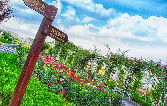 六楼玫瑰宴会厅藏身于满目青翠,郁郁葱葱,环境优雅的空中玫瑰花园。花园中百花齐放、百鸟争鸣,随手便是一张风景美照。这里曲径通幽,一步一景,宛若世外桃源;这里静谧悠闲,闲庭漫步,随享城市静谧;这里浪漫幽静,鸟语花香,尊享纷杂生活中难得的休憩与放松。