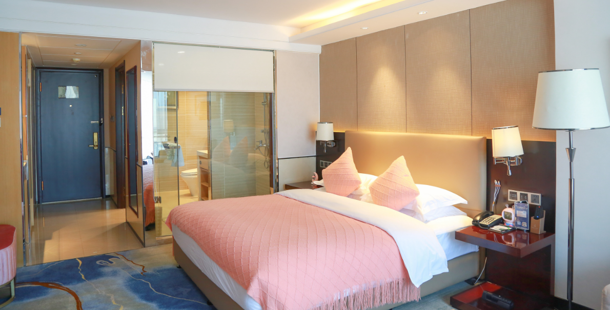 零压睡眠大床间位于酒店7—15层,面积39—43㎡,宽大的落地窗将九龙河风光全部尽收眼底。宽敞的淋浴空间与设备齐全的配备,适合家庭或商务旅客,或工作或放松。